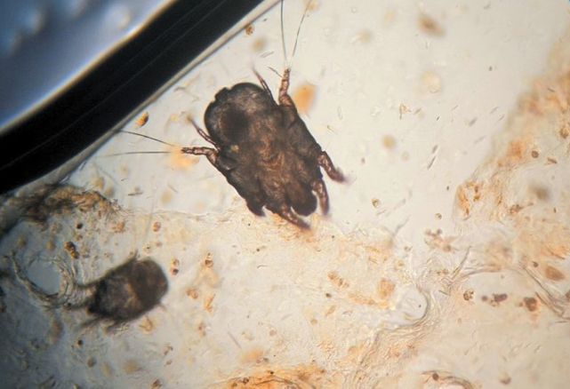 При прикосновениях к пораженным участкам тела коровы проявляли беспокойство, вздрагивали, переминались с ноги на ногу. В обследованном помещении доля животных с такими клиническими симптомами составляла 12,0% (31 голова из 252 голов). Необходимо также отметить, что кожные покровы и шерсть коров были загрязнены, на конечностях и хвостах имелись навозные бляшки и корки. У 80% обследованных коров оценка зооги-гиенического состояния составляла 3-4 балла. При акарологических исследованиях соскобов с мест поражения кожи (n=4) были обнаружены клещи-кожееды вида Chorioptes bovis и их яйца (рисунок 3 и 4).