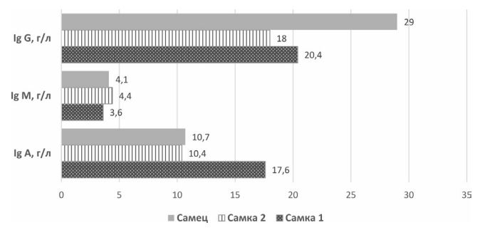 УДК 619.616.98:574.632 DOI 10.33861/2071-8020-2026-1-37-40 Оригинальное эмпирическое исследование Горковенко Н. Е., Сербаев Я. С. Федеральное государственное бюджетное образовательное учреждение высшего образования «Кубанский государственный аграрный университет имени И. Т. Трубилина», г. Краснодар Аннотация. Морские млекопитающие, живущие в неволе, сталкиваются с обстоятельствами, совершенно иными, чем в естественной среде обитания. Изменение качества водной среды обитания, привычного рациона питания, стрессы, связанные с проведением зрелищных мероприятий, приводят к изменению иммунного статуса и микробного фона организма, что в свою очередь отражается на здоровье животного. Цель исследования: изучить иммунобиологический статус южноамериканских морских львов, содержащихся в центре морской биологии. Материалы и методы исследований. Анализу были подвергнуты данные, полученные в ходе проведения исследования: результаты клинического обследования, состав кишечного микробиома, биохимические параметры сыворотки крови, гематологические и иммунологические показатели изучаемых животных. Результаты исследований и их обсуждение. Несмотря на отсутствие в кишечном микробиоме изучаемых ластоногих патогенных бактерий, у обеих самок наблюдался дисбактериоз. У всех животных выявлен повышенный уровень АЛТ, при этом уровень АСТ был значительно ниже средних показателей для вида. В сыворотке крови всех особей отмечали низкое значение щелочной фосфатазы (в 1,6 раз ниже физиологической нормы) и повышенное количество глобулиновой фракции белка. Установлено, что уровень IgА был довольно высоким у всех животных, а у одной из самок был выше, чем у двух других особей более, чем в полтора раза. Иммуноглобулины класса G в крови самца в 1,5 раз превышали показатели самок. Заключение. Концентрации IgА в сыворотке крови ластоногих, по-видимому, существенно выше, чем у наземных хищных млекопитающих. Ключевые слова: океанариум, морской лев, иммунитет, гемограмма, биохимические показатели, микробиом кишечника, дис-биоз, фагоцитарная активность. Южноамериканский морской лев (Otaria flavescens) – вид ушастых тюленей. В естественных условиях на пляжах из песка, гальки, их можно видеть на плоских скалистых утесах с водоемами. Южноамериканские морские львы широко распространены по Атлантике и Тихому океану вдоль побережья Южной Америки [1, 2]. Самец намного крупнее самки, имеет гриву, весит около 300 кг, тогда как самка весит примерно в 3 раза меньше. Морской лев естественным образом защищен от холода, ныряет ли он в глубины океана или разваливается на прибрежных скалах, обдуваемых ледяными ветрами. Слой жира под его кожей служит изоляцией, а его густой мех в сочетании с водонепроницаемым подшерстком благодаря маслянистым выделениям сохраняет его кожу сухой даже в воде. Продолжительность жизни составляет около 20 лет для обоих полов в естественной среде обитания и при жизни в неволе. Морской лев питается в основном пелагическими, донными и бентосными видами рыб, кальмаров и ракообразных. В природе общая численность популяции южноамериканских морских львов оценивается в 445 тыс. особей, по классификации международного союза охраны природы МСОП вид относится к группе, находящейся под наименьшей угрозой, но численность локальных популяций или их ареал может сокращаться [3]. Многие зоопа