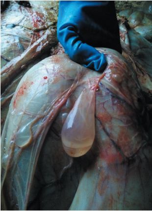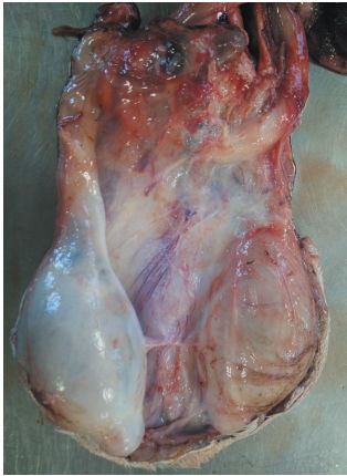 УДК 619:616.995.132 DOI 10.33861/2071-8020-2026-1-46-48 Оригинальное эмпирическое исследование Аксенова П. В. Федеральное государственное бюджетное образовательное учреждение высшего образования «Донской государственный технический университет», Ростовская область, г. Ростов-на-Дону Аннотация. В данной статье впервые описаны патоморфологические изменения при уретральной непроходимости и некрозе пениса у южноафриканского орикса (Oryx gazella). Стриктура и спайки пенильного отдела уретры вследствие склеротизации и некроза вызвали уростаз, приведший к уремии, обструктивной почечной недостаточности, разрывам в шейке мочевого пузыря, дистрофии миокарда, атрофии селезенки, воспалению и некрозу печени, острому отеку легких и ДВС-синдрому. Верхушка пениса вместе с препуцием подверглись сухой гангрене. Выше демаркационной линии отмечены нарушение структурности пещеристого тела пениса, повышенное наличие соединительнотканных компонентов, склероз сосудов и очаговая воспалительная реакция в виде выброса лимфоидных клеток. Мочеполовой канал сужен, местами сращён, имелись свищи. В тканях предстательной железы имелись изменения, характерные для простатита. Ключевые слова: орикс, аутопсия, уремия, уретральная непроходимость, уростаз, обструктивная почечная недостаточность, некроз пениса, пенитальная уретра, шейка мочевого пузыря, токсическая дистрофия, стриктура уретры, уролит, свищ, мочеточники, почки. Ориксы – это вид саблерогих антилоп, обитающих в саваннах и полупустынях Южной Африки. Вид в Красном Листе Международного союза охраны природы и природных ресурсов отнесен к категории «Least concern» (вызывающие наименьшее опасения). Ориксы достаточно успешно разводятся в зоопарках. Однако в ветеринарном аспекте эти животные изучены недостаточно. В частности, не найдено ни одной научной публикации о заболеваниях репродуктивных органов у ориксов. Ветеринарная наука, в целом, не располагает достаточным количеством исследований половой системы у диких копытных, хотя данная сфера у сельскохозяйственных животных охвачена достаточно широко. Так, относительно заболеваний уретры и пениса известно крупное ретроспективное исследование различных патологий пенильной уретры у 403 самцов крупного рогатого скота, буйволов, овец и коз, которые включали: 320 случаев её обструкции уролитами, из которых 192 случая закупорки сопровождались разрывом мочевого пузыря, 45 случаев врожденной дилатации уретры, 21 случай разрыва и 17 – врожденной гипоспадии. У быков и буйволов закупорка уретры происходила в дистальной части сигмовидного изгиба, а у мелкого рогатого скота – в области уретрального отростка. Разрыв уретры наблюдали в месте обструкции в районе сигмовидного изгиба [1]. Частоту патологий полового члена у домашних баранов определили в 2,9%. Наиболее часто авторы наблюдали некроз пениса (51,35%), вызванный за- купоркой уретрального канала, некроз пениса неясной этиологии (1,85%), отсутствие уретрального отростка и повреждение головки полового члена (по 1,1%), гипоспадию (0,74%), патологии препуциального мешка: абсцессы, папилломы, повреждения кожи, ретрофлексию уретрального отростка и баланопостит (по 0,37 %) [2]. Нередко, причиной поражения препуция и пениса у копытных, чаще у баранов, являются личинки вольфартовой мухи (Wohlfahrtia magnifica) [3] По оценке специалистов у баранов крайняя плоть 